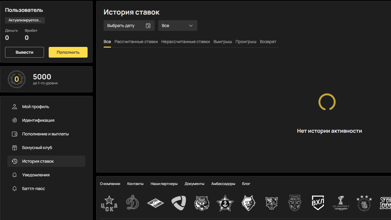После регистрации и прохождения верификации необходимо пополнить счет минимум на 1000 рублей. После этого будет начислен фрибет номиналом 2500 рублей.